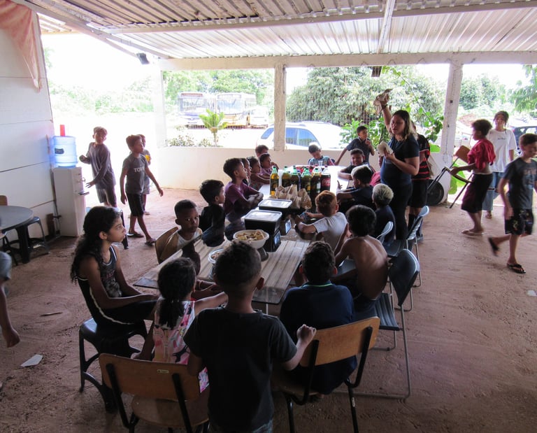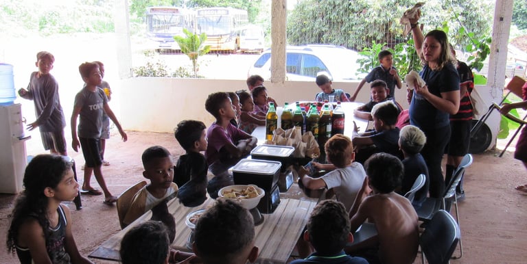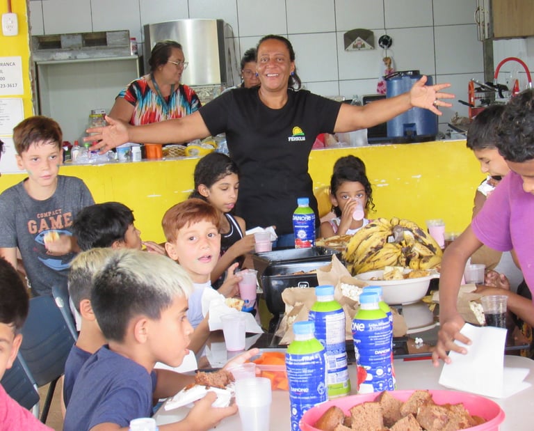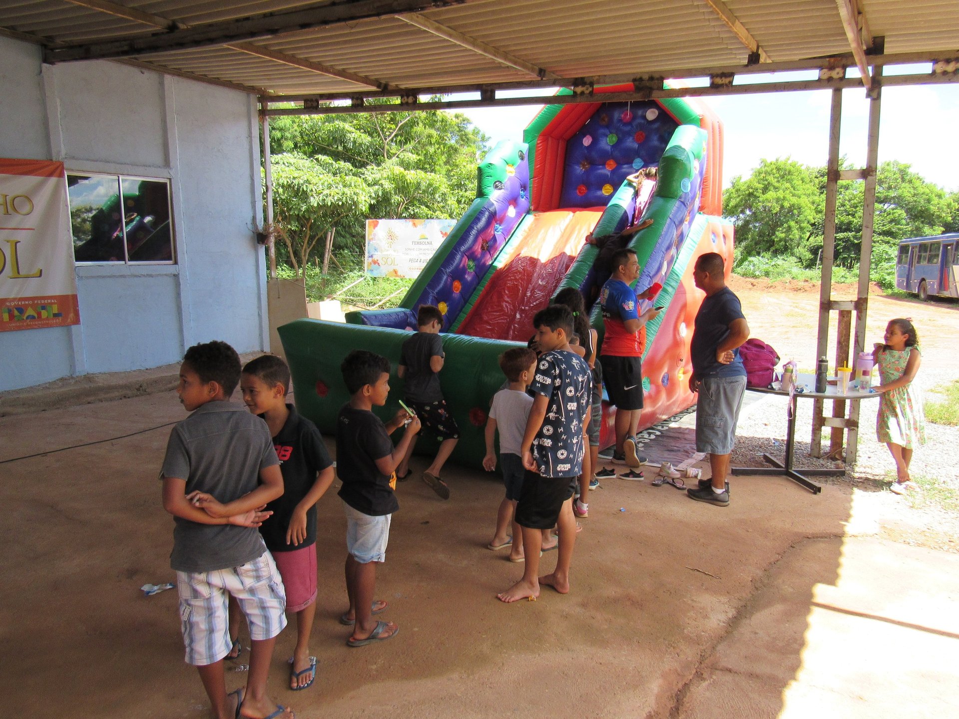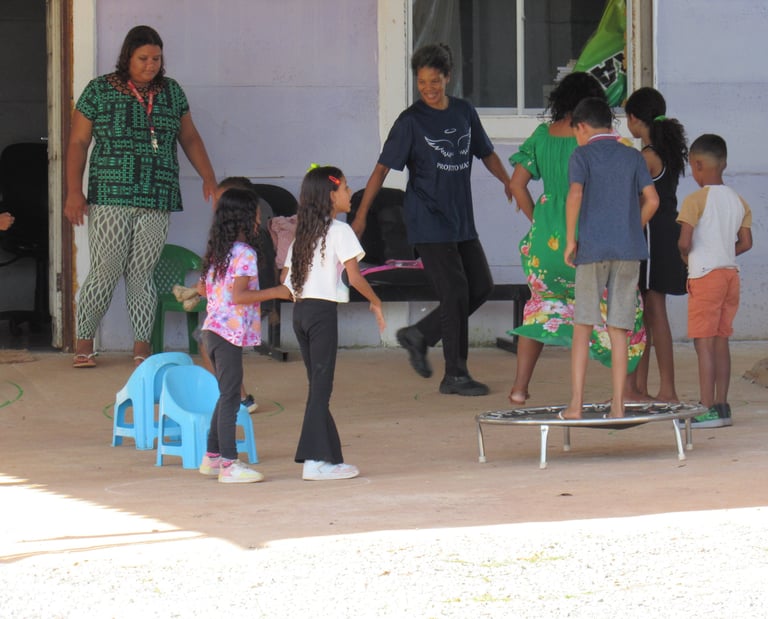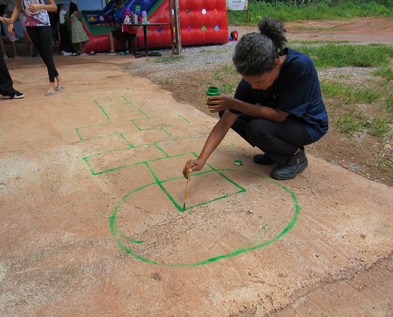 A ação social realizada para as crianças do bairro Sol Nascente teve como objetivo proporcionar um momento de lazer, aprendizado e integração para os pequenos da comunidade, durante a colônia de férias. A atividade contou com diversas oficinas recreativas, culturais e educativas, estimulando a criatividade, o trabalho em equipe e o respeito ao próximo. Durante a colônia de férias, as crianças participaram de atividades como jogos cooperativos, pintura, oficinas de dança, teatro e contação de histórias, sempre com foco no desenvolvimento emocional e social. Além disso, as crianças foram incentivadas a praticar esportes como futebol, vôlei e atividades aquáticas, garantindo também a prática de exercícios físicos e a diversão ao ar livre. O evento contou com a participação de voluntários que contribuíram para criar um ambiente acolhedor e de confiança, oferecendo apoio e atenção às crianças durante todas as atividades. Foi um espaço para elas expressarem sua individualidade, além de aprenderem sobre valores importantes como solidariedade, respeito e amizade. Ao final da colônia de férias, as crianças do Sol Nascente saíram mais conectadas com o seu entorno, com mais confiança em si mesmas e com a sensação de pertencimento a uma comunidade unida, que se preocupa com o bem-estar e o futuro das novas gerações.