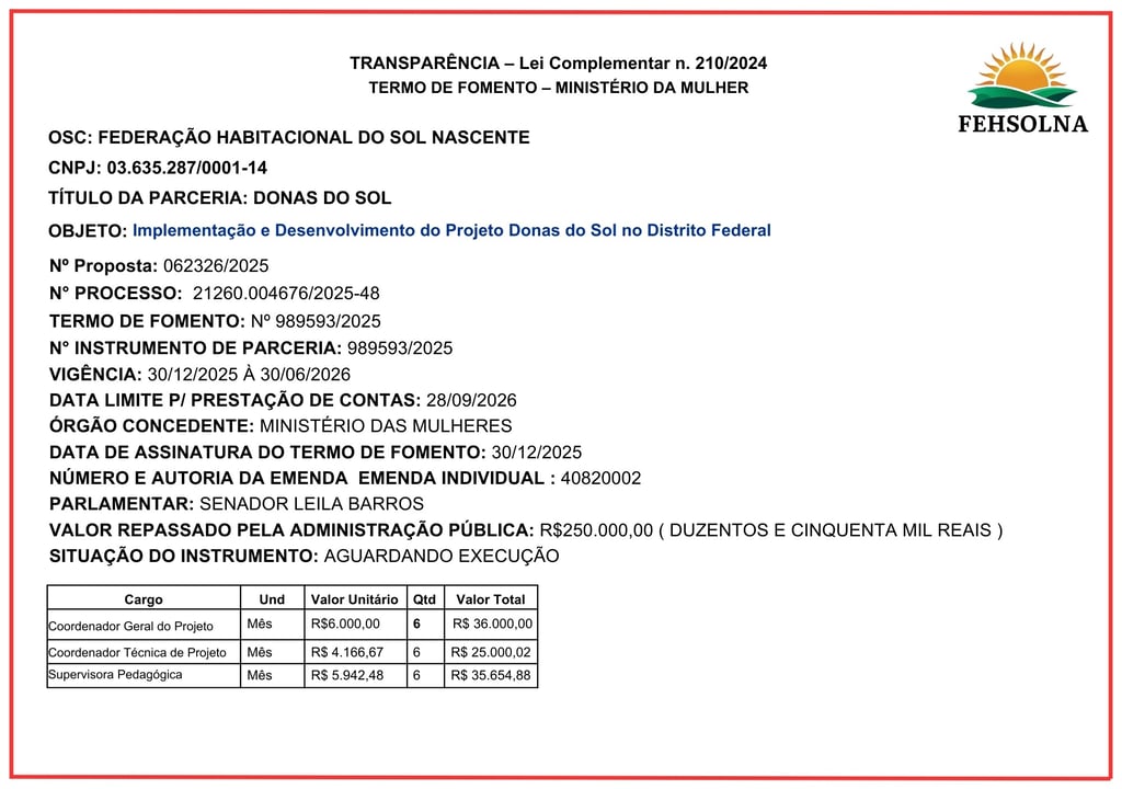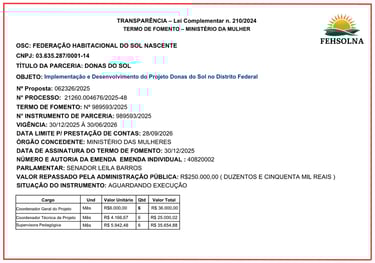 Implementação e Desenvolvimento do Projeto Donas do Sol no Distrito Federal.