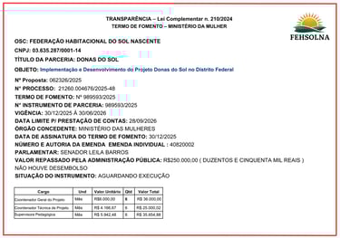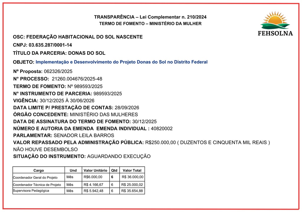 Implementação e Desenvolvimento do Projeto Donas do Sol no Distrito Federal.